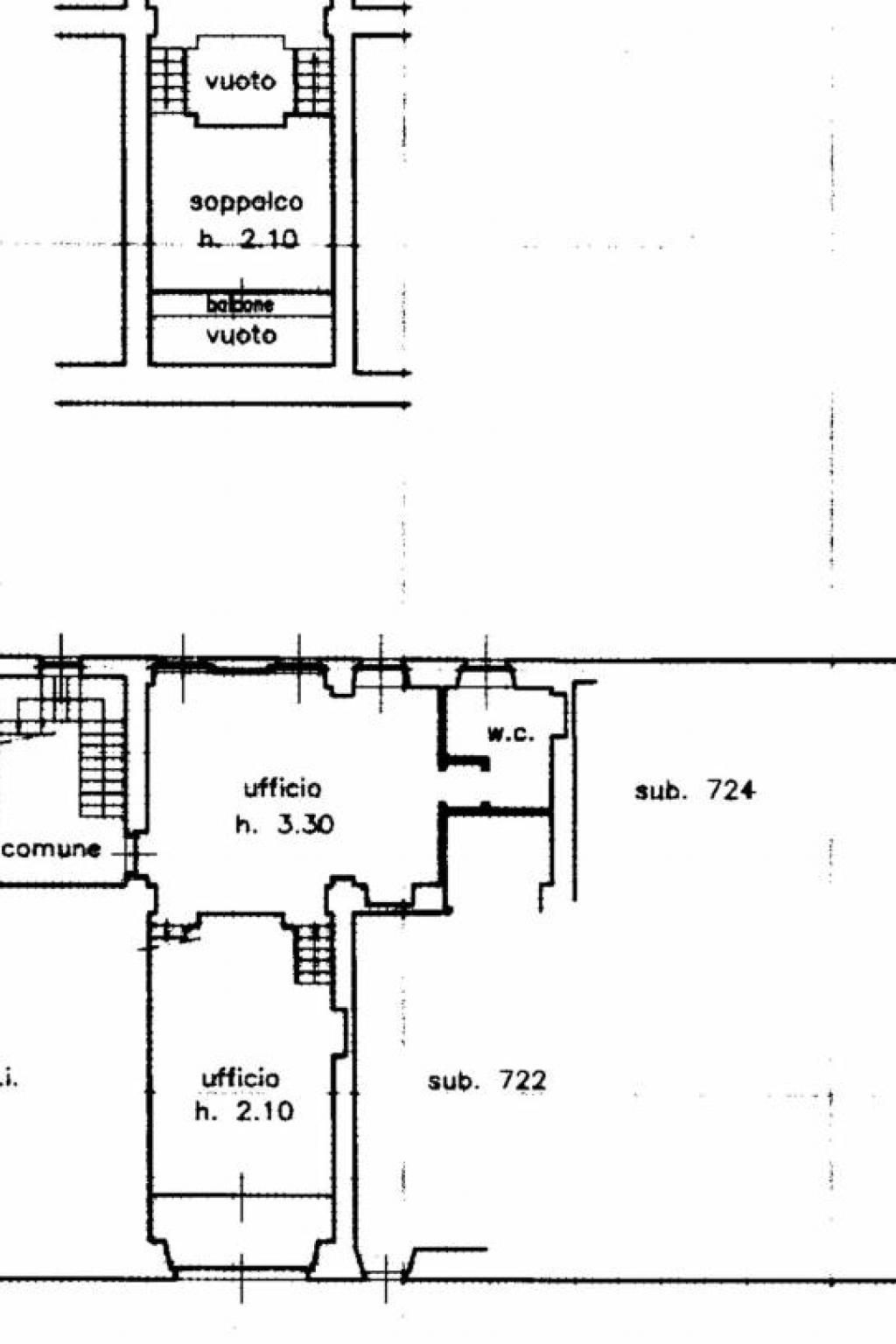 Attualmente ampio open-space con soppalco e servizio per un totale di mq 125, possibilità di ampliamento con ufficio posto sempre al piano terra di altri mq. 50 con servizio.
