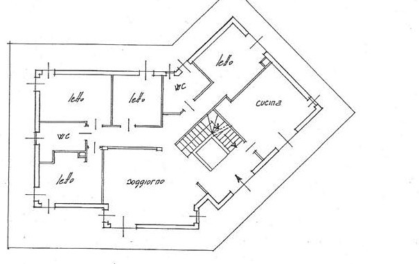 Due grandi appartamenti, uno al piano terra di mq. 173, adatto per i genitori della famiglia, costituito da un grande soggiorno, ampia cucina pranzo, camera e bagno e porticato. Al primo piano, di mq. 210, soggiorno con camino, cucina, quattro camere da letto e due bagni. Balconi su tutti i lati. Mansarda con due grandi terrazzi che donano una bellissima vista sulle colline. Seminterrato luminoso di mq. 186, aperto sul cortile, con lavanderia, cantina, locale sgombero, bagno.